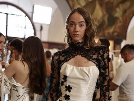 Desde Gran Canaria, Pedro Palmas presentó “L’Amour”, inspirado en la ópera Carmen, una colección que exaltó la feminidad y la libertad con siluetas dramáticas y encajes elaborados. Aurelia Gil brilló con “Mi Suerte”, cerca de treinta looks nupciales confeccionados con tejidos nobles y un estilo boho-chic artesanal.