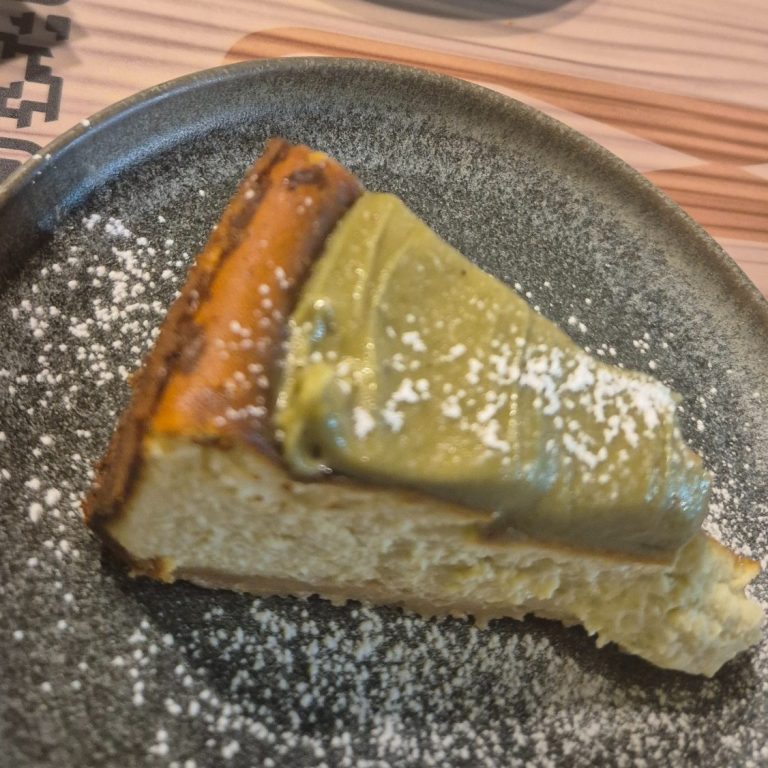 Probé también los rolls de pollo satay, el carpaccio de atún rojo, y claro, el final dulce: un cheesecake de matcha y pistacho que no puedo describir sin quedarme corta. Fue como cerrar los ojos y entender que la fusión también puede ser emoción.